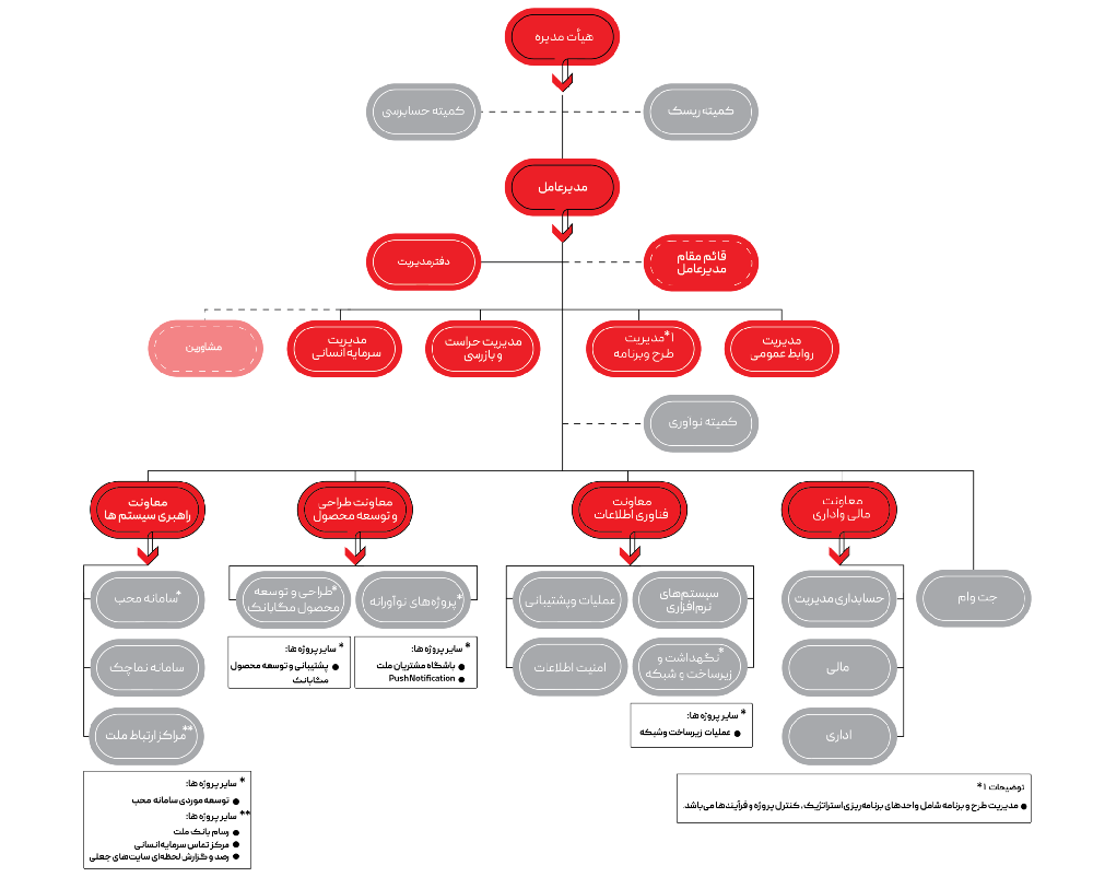 این شرکت دانش بنیان، طی سالهای اخیر علاوه بر خدمترسانی در حوزه محصولات خود به بانک بزرگ ملت از جمله باشگاه مشتریان بانک ملت، نماچک، مرکز تماس مشتریان بانک ملت (۱۵۵۶) و سامانه مدیریت حسابهای بانکی (محب) ویژه مشتریان شرکتی، با تجهیز خود به دانش روز و نیروهای کارآمد توانسته است در حوزه تولید نرمافزارهای موبایلی نیز جایگاه ویژهای را برای خود در هلدینگ و صنعت بانکی ایجاد نماید.